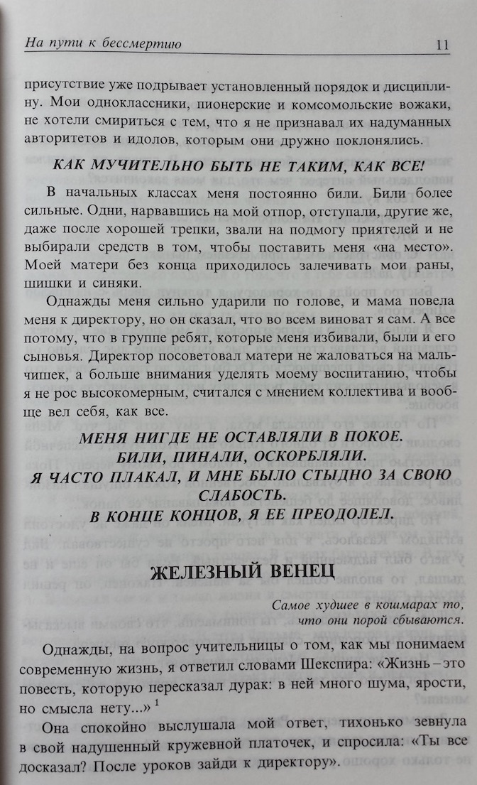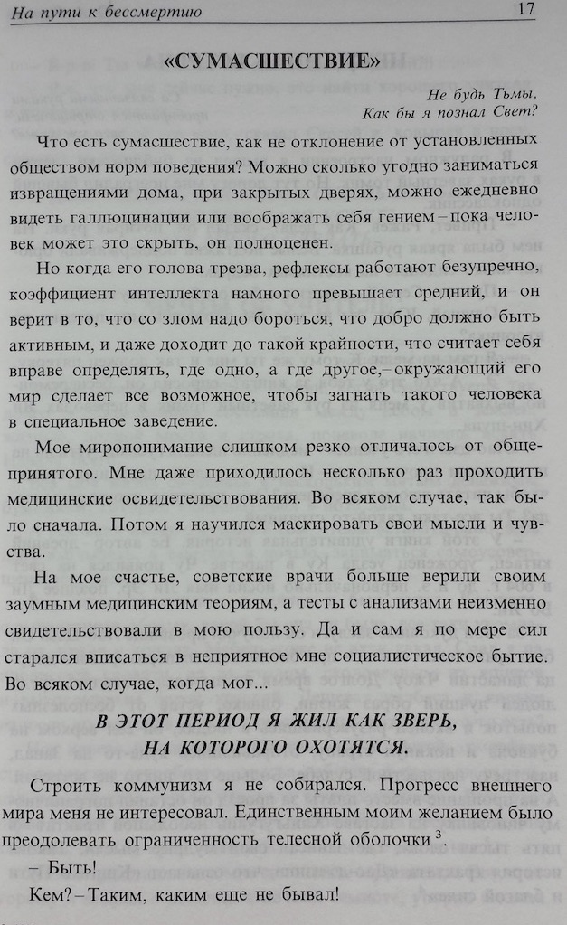 Набрав изрядную коллекцию цитат, шарлатан практически их не меняя (литературным талантом он по собственному признанию был обделен) составил из них свою первую книгу – «На пути к бессмертию» (см. 2), которая и стала воплощением его мечты об интересной жизни.