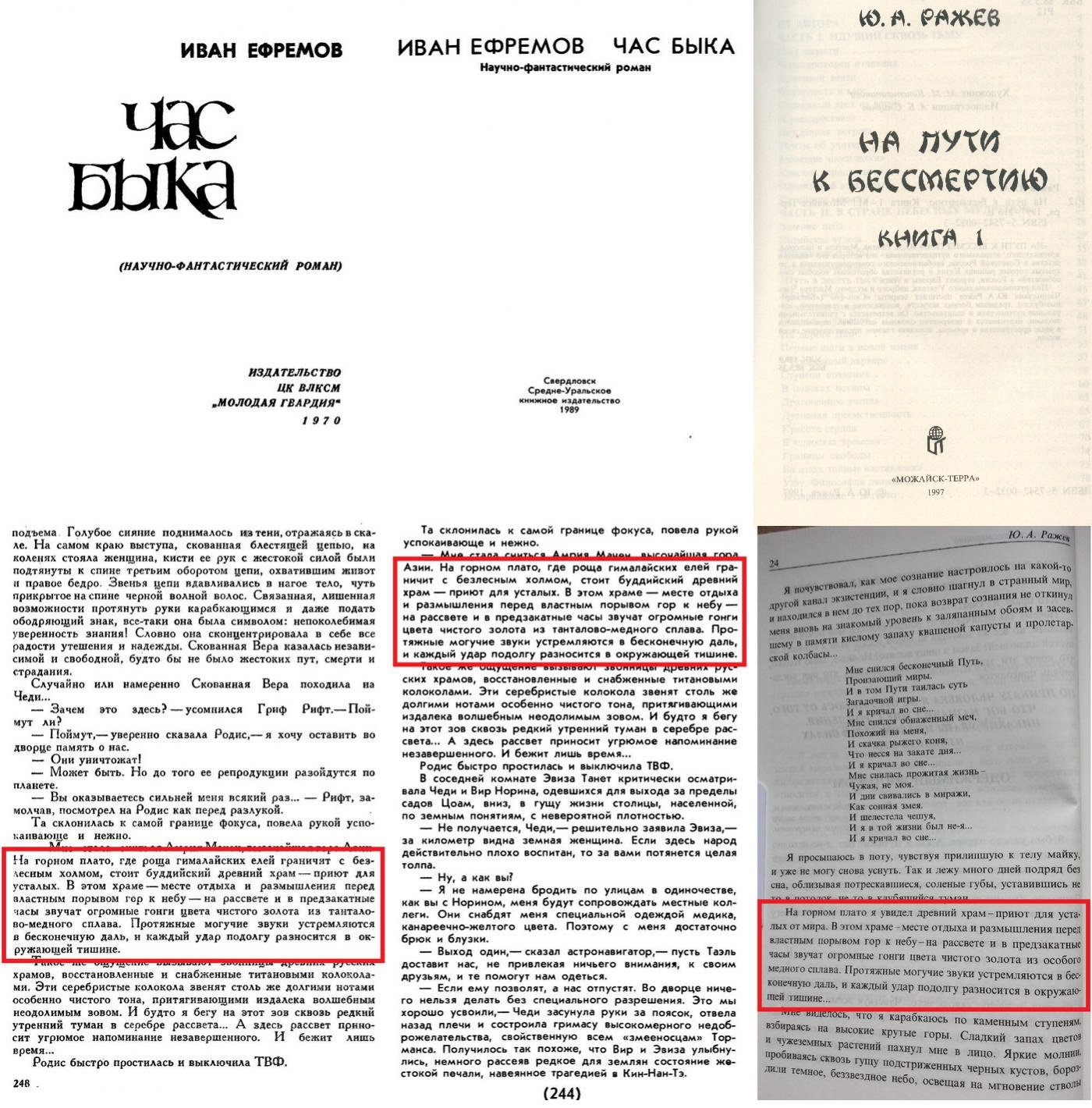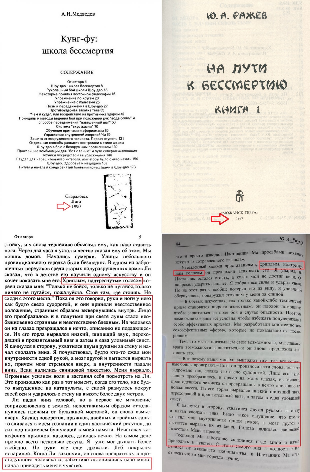 Также снова обращаем внимание что в первом отрывке сплагиачены конкретные события с участием учителя Чэня и самого Ражева, что еще раз доказывает что ни о какой автобиографичности здесь не может быть и речи.